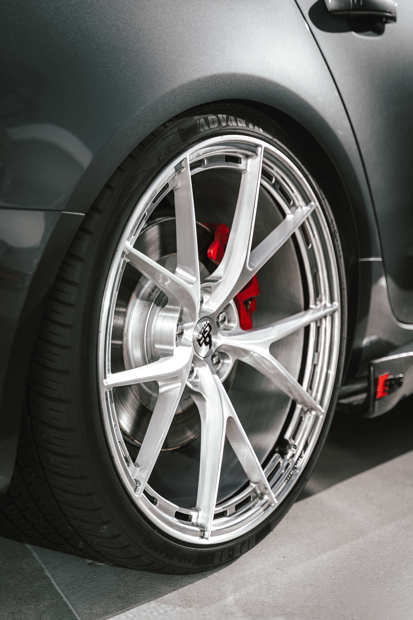 Also being displayed for 2026 is the Project 6GR CL series. (Center lock) The Porsche Cayman GT4 is wearing our latest model finished in candy apple red with red center lock accents. The wheels are crafted from forged T6061 Aerospace grade aluminum and designed to showcase a center lock look but with the functionality of a traditional 5 lug application.