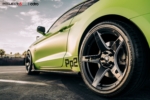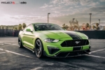 We had the opportunity to Collab with the team over at Adro bringing you this stunning build! Special thanks to Galpin Auto Sports for the installation process and Zuumy for the amazing photoshoot! This Mustang get fitted to perfection with Project 6GR 5-FIVE wheels in the Gloss Black / White window custom finish giving it the ultimate color combo making those white accents pop. To top it off the PPF Matte wrap gives the Grabber lime color a stealthy look. The fitment on this beast is what we call the “Perfect” setup measuring 19×10 35MM 285/35/19 Front and 19×11 50MM 325/30/19 rears . This Mustang GT is lowered on the Eibach Pro-kit setup. The perfect 1″ drop.