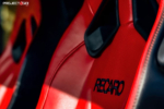 This Mustang GT looks best and performs well paired with the Project 6GR 7-SEVEN wheels in standard Gloss Black finish giving it the ultimate color combo. This GT gets a ultimate racing look with the showstopper Red recaro seats! The fitment on this beast is what we call the “Perfect” setup measuring 20×10 35MM 285/35/20 Front and 20×11 50MM 305/35/20 rears . This Mustang GT is lowered on the Eibach Pro-kit setup.
