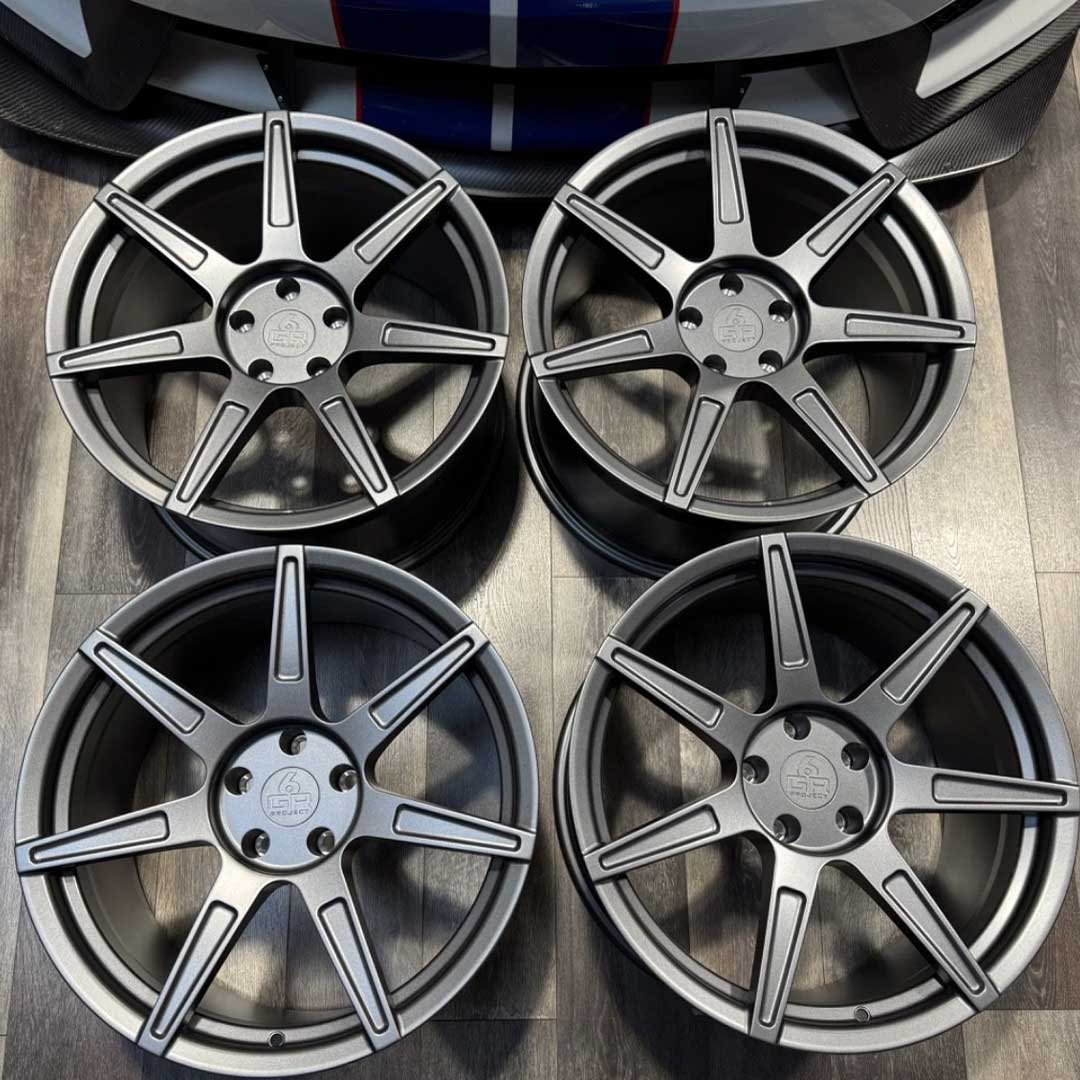 Each wheel includes center caps with Project 6GR branding. Hardware like lug nuts, valve stems, and TPMS sensors are not included since most customers reuse existing components or have specific preferences. If you need mounting hardware or accessories, contact us or your installer for recommendations.