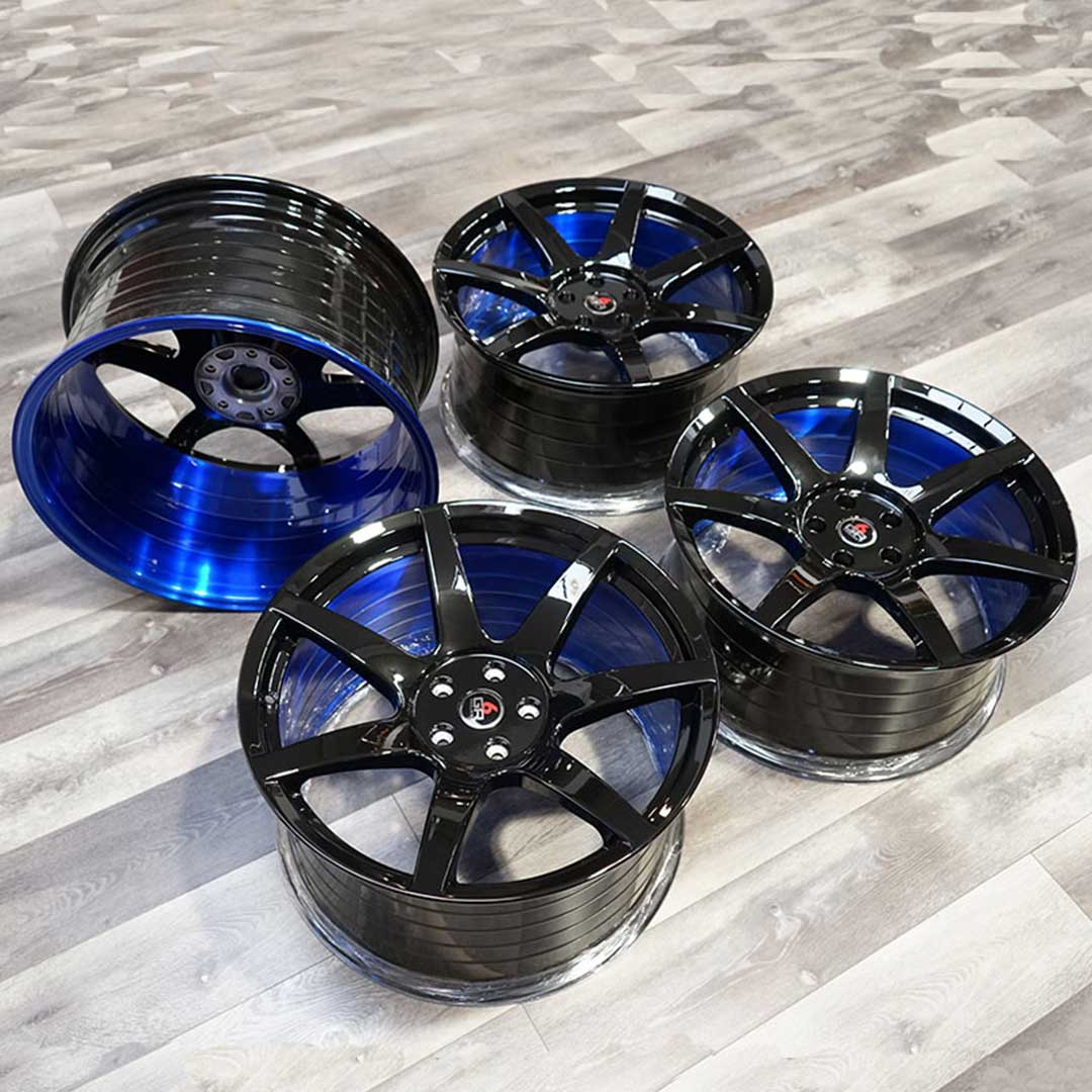 Standard finish options are listed on this page. If you want a custom finish, special color, or unique specifications not shown here, contact us to discuss your vision. Custom finishing is available on both Spun Forged and fully forged wheels with additional lead time.