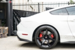 As the most powerful and quickest factory Mustang ever, the Ford Mustang Shelby GT500 blends both modern sports car performance and muscle car design. It builds on the same racetrack as the Shelby GT350, with an additional 234 horsepower that lends it credibility at the drag strip as well. The GT500 includes a supercharged V-8 that pushes 760 horsepower, a quick-shifting seven-speed dual-clutch automatic, and magnetorheological dampers. Optional carbon-fiber wheels, track tires, and aerodynamic aids are available for drivers looking to get the most out of this monster Mustang. Project 6GR wheels is proud to announce fitment for the all new GT500 clearing the massive Brembo Brake calipers!