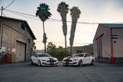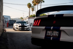 Both vehicles are not stock, they are both upgraded with some tasteful modifications. For the White/Black Shelby the car is lowered on Ford Performance lowering springs and is equipped with 4 Point roll cage for the track. Carbon fiber hood vents were added to the hood to keep iat’s down. In the near future this vehicle is getting some big power upgrades.