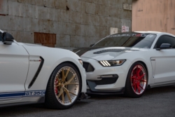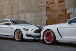 Hello everyone! Today we wanted to share both of these beautiful Ford Shelby GT350Rs that we had a chance to photograph. They are both rocking the Project 6GR Forged Ten-R Wheels. The custom finishes on these wheels looking amazing! For the White/Black Shelby the finish is Brushed Candy Apple Red center, Polished Lip/ Polished Hardware, Brushed Aluminum Barrel. For the White/Blue Shelby the finish is Satin Gold center, Satin Polished Lip/Black hardware, Gloss White Barrel. The wheel specs on both cars are 20×11 all around with 315/30/20 rears, 305/30/20 front for White/Black and 295/30/20 for White/Blue. Both wheel sets were wrapped in Michelin Pilot Sport 4s tires.