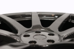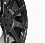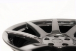 Shown here is the Project 6GR wheel in the carbon fiber hydro dip finish. The process starts off by having a base coat applied to the wheels and then carefully dipped in a water solution that contains the carbon fiber design. Moving forward to the next step, the wheels will have their inner barrels painted jet black and finally the entire wheel will be sealed and coated by a high gloss clear coat. Applied evenly throughout the entire surface of the wheels, it creates a seamless transition of the carbon fiber design on the face to the jet black finish on the barrel.