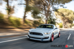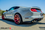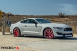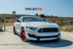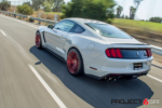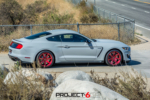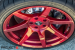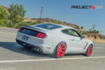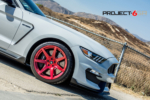 Given that this GT350 Shelby is much closer to home, we wanted to do something really different to stand out. The fitment of the R-spec 19×11 front and 19×11.5 was perfect, but we needed a finish that would really stand out. We decided to use what is call a “fine” brush candy apple red. The difference between the regular brush and fine brush is exactly what the name states. The finer brush strokes create a deeper look and also brings the finish alive under direct sunlight. We wrapped the Project 6GR wheels with the Bridgestone RE-11 305/30/19 front and 325/30/19 rear for maximum handling and traction while accelerating and cornering. The candy apple red finish on the Project 6GR wheels also does a great job in complimenting the rear tail lights and reflectors.