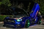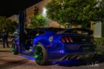 Project 6GR wheels takes this GT to another level. This award winning show ready Mustang is fitted with a 5.0-liter V8 producing 435HP and bloodcurling exhaust sound. This GT is fully built to perfection by Ray Cordoba. Ray is very known in the LA area as a car enthusiast attending every show with his unique custom Mustang GT equipped with cquence drilled/slotted rotors, trufiber carbon fiber components, 4″ inch cowl hood, widebody kit, airlift suspension and the Project 6GR wheels. The most handling possible is required with all the power under the hood. We completed the performance on this Mustang with the custom Gloss Black / Green Project 6GR 10-TEN wheels in the be-spoke program. The spun Forged wheels feature a light weight construction, extra brake caliper clearance and a deep concave look. The fitment on this GT is measuring 20×10 275/35/20 Front and 20×12 315/35/20 rear. The Michelin Pilot Super sport is an Ultra High Performance street / track tire that provides a blend of performance, ride comfort and quality.